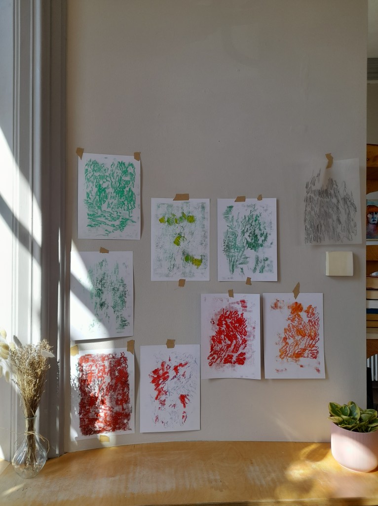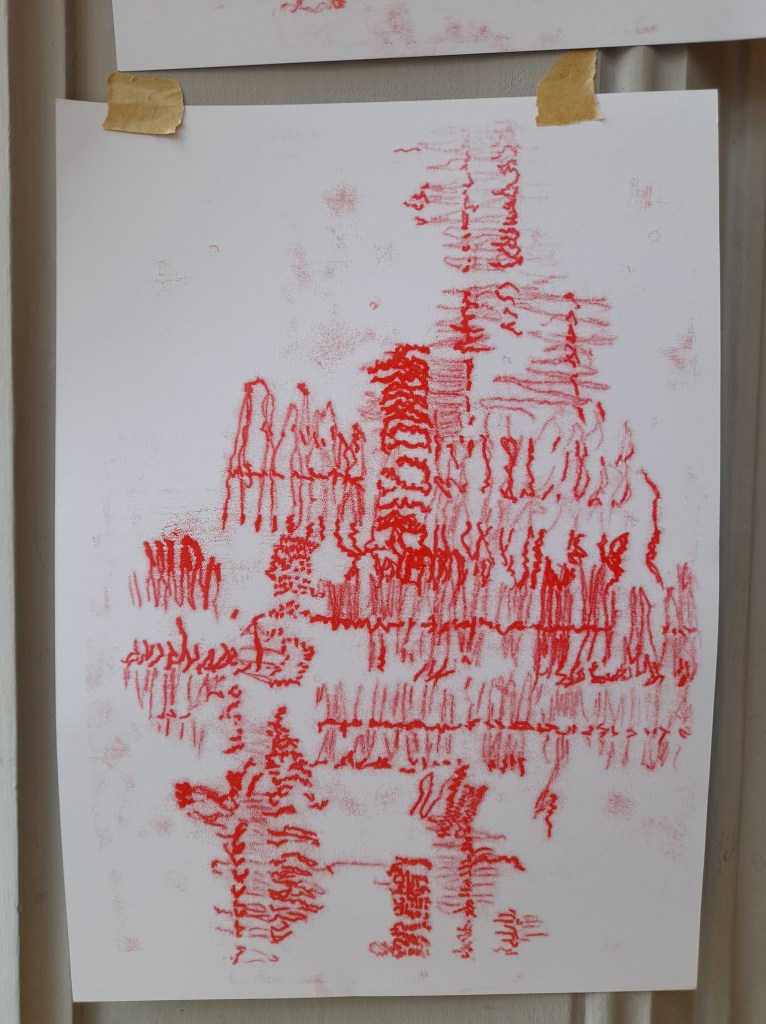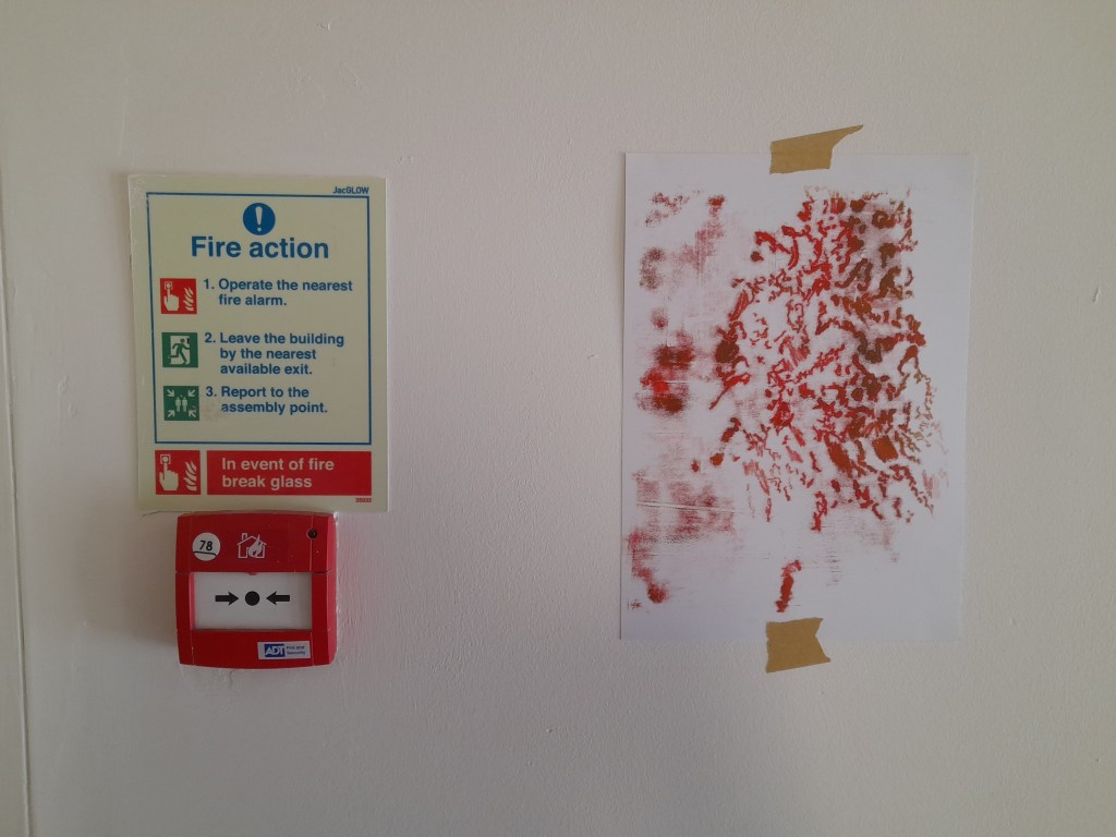 BRICKS! was a project developed during my residency at Crescent Arts Centre in Belfast, when I tried to document as many limestone bricks as possible, from the building’s structure, using the processes of tracing and monoprinting. The prints were haphazardly placed on the walls around the building, in an ad hoc manner throughout the residency, reflecting the playfulness of the project and juxtaposing it to the rigidity, the harshness and the sturdiness of the limestone.